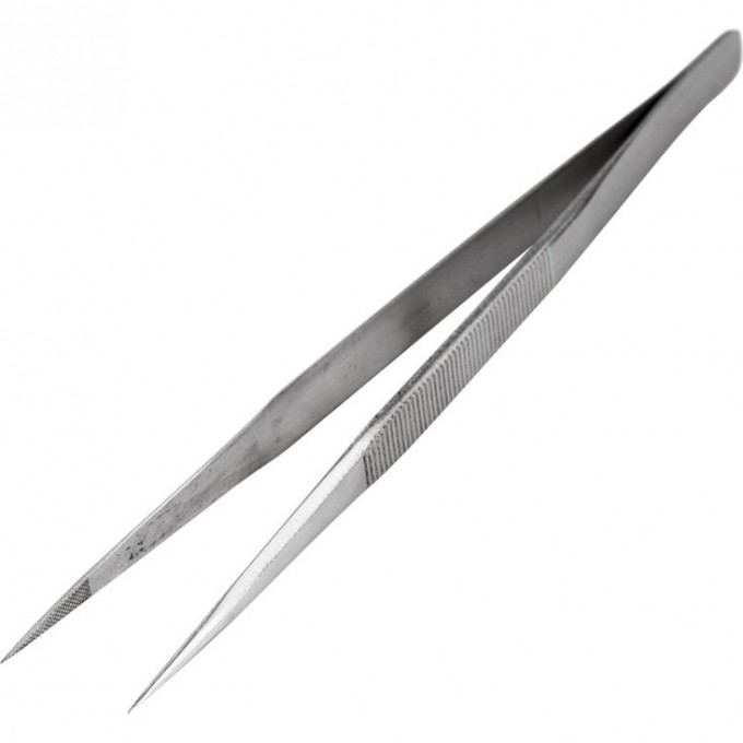 Прямые рифленые концы позволяют надежно удерживать детали. Оптимальная длина и небольшой вес пинцета делают работу наиболее комфортной.