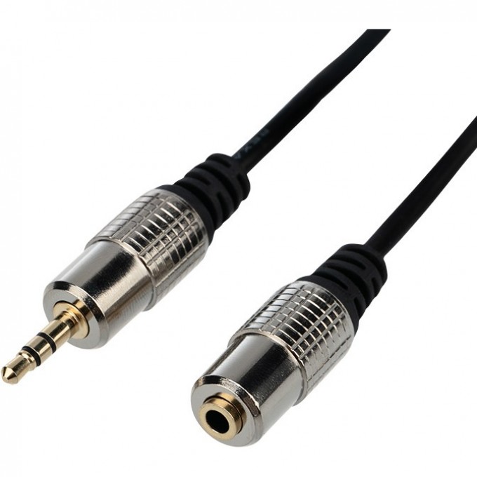 Шнур REXANT стерео 3.5 мм гнездо - стерео 3.5 мм штекер 5 м gold-металл 17-4026